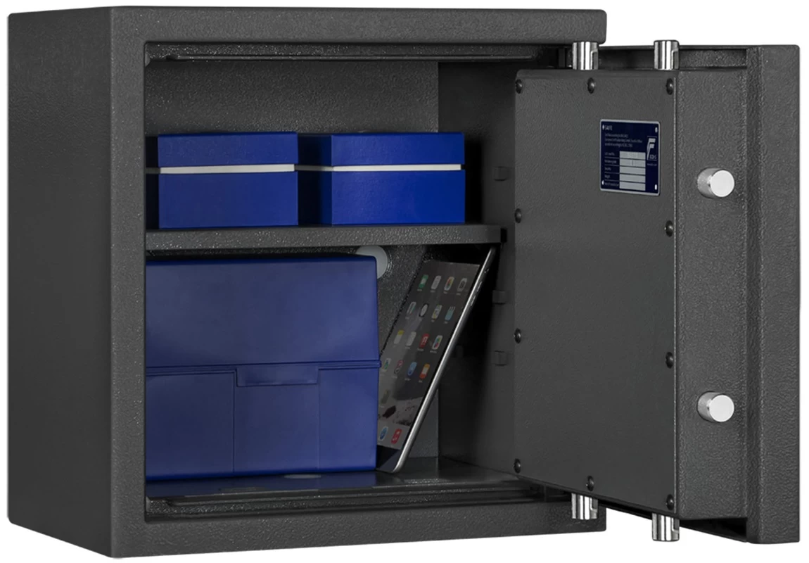 Дали здание купить сейф для офиса. Ценовая категория до 100 тыс. руб., функции - защита от взлома. Менеджеры посоветовали сейф Lyra-1 EL. Производство Германия. Все сертификаты на него есть. Важный момент, который нас впечатлил, так это облегченная конструкция по сравнению с другими взломостойкими сейфами, при аналогичных технических характеристиках. Доставка бесплатная по Москве.